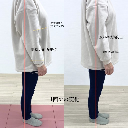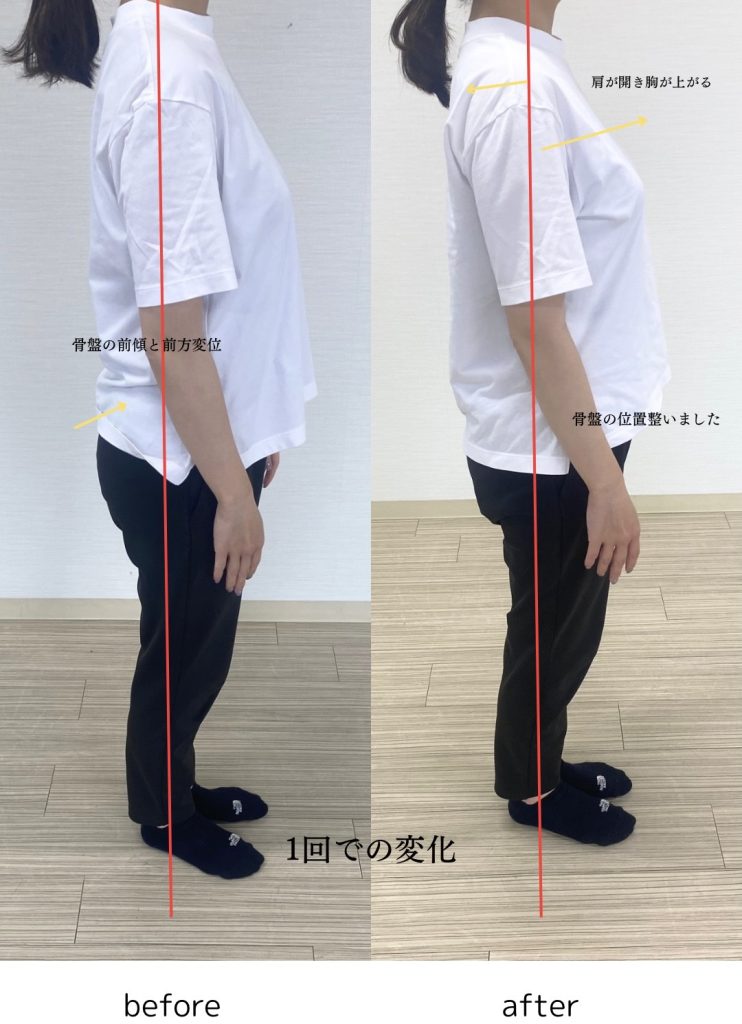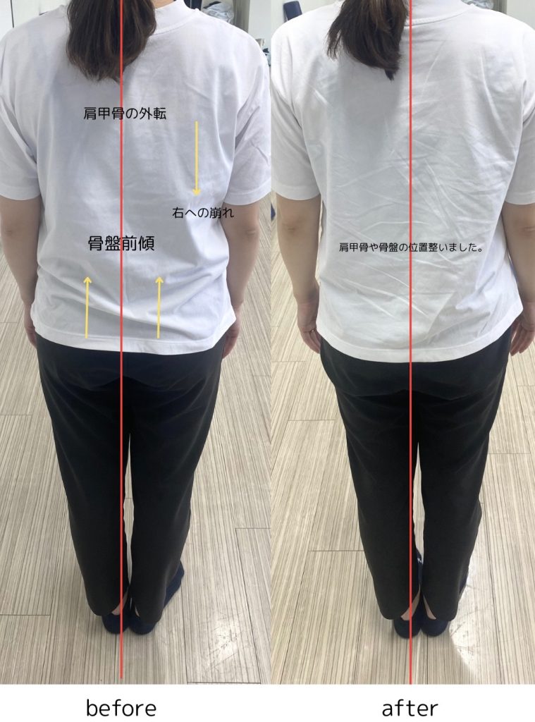 ↑産後のケア。姿勢が整い身体が軽くなりました。